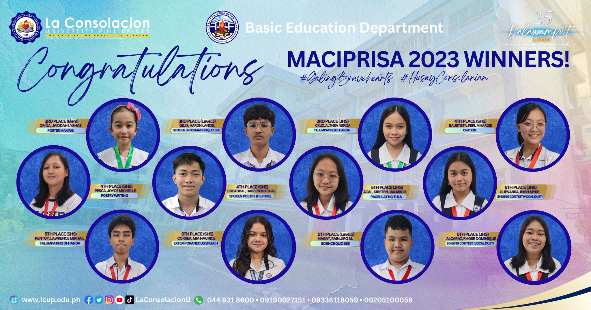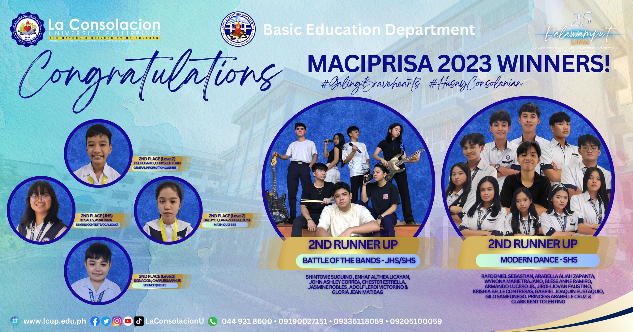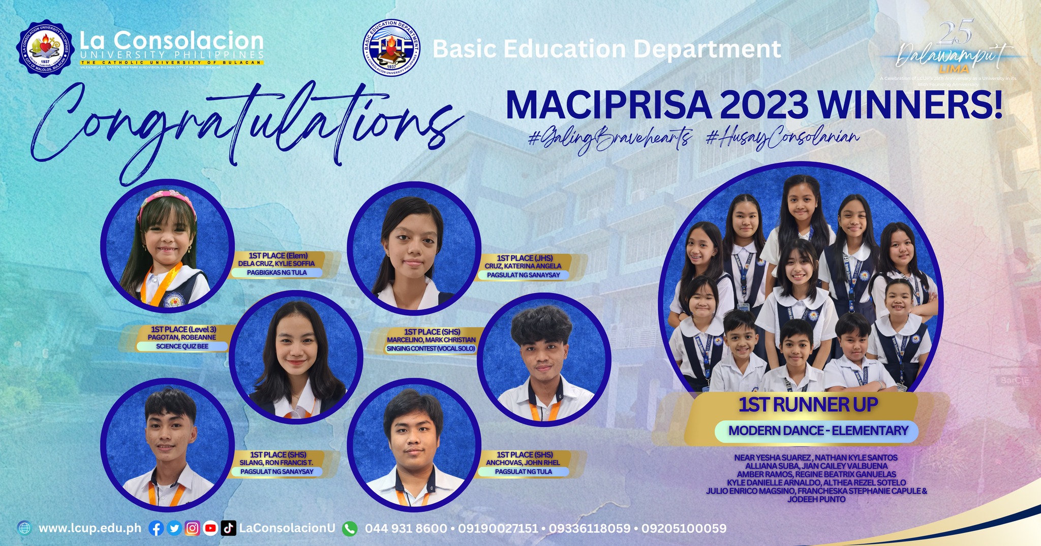 Competing against all private schools in the City of Malolos, Consolanians victoriously secured places in Cultural, Academic, and Sports Events.