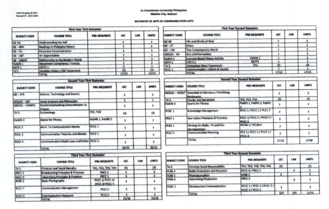 The BACHELOR OF ARTS (B.A.) IN COMMUNICATIONS program is designed to offer a well-rounded education with an emphasis in the field of media and communications. The program is anchored on giving students a comprehensive view and nuanced understanding of the role of media and communication in society as well as media's immense power and influence in to platforms and provides hands-on experience in the areas of journalism, photography, advertising, public relations, media planning and management, broadcasting, scriptwriting, production design, directing and development communication among others. The learner-centered and outcomes-based pedagogies applied in the program engage students to think critically about global issues and analyze them from all dimensions: societal, cultural, historical, political, economic, technological and legal. The BA in Communication program seeks to educate students to be responsive to the fast-paced, ever changing professional environment of mass media. Its goal is to produce graduates who are independent and responsible professional communicators capable of critically and creatively producing media messages for various groups in an increasingly global society. Moreover, the program is grounded in the rich tapestry of Marian-Augustinian values. These core principles, characterized by key values such as interiority, humility, compassion, community-orientedness, missionary spirit and faith serve as the foundation of the curriculum as well as holistic student development. By integrating these values into the program, students do not only become skilled communicators but also compassionate, ethical and socially responsible individuals who contribute meaningfully to society.