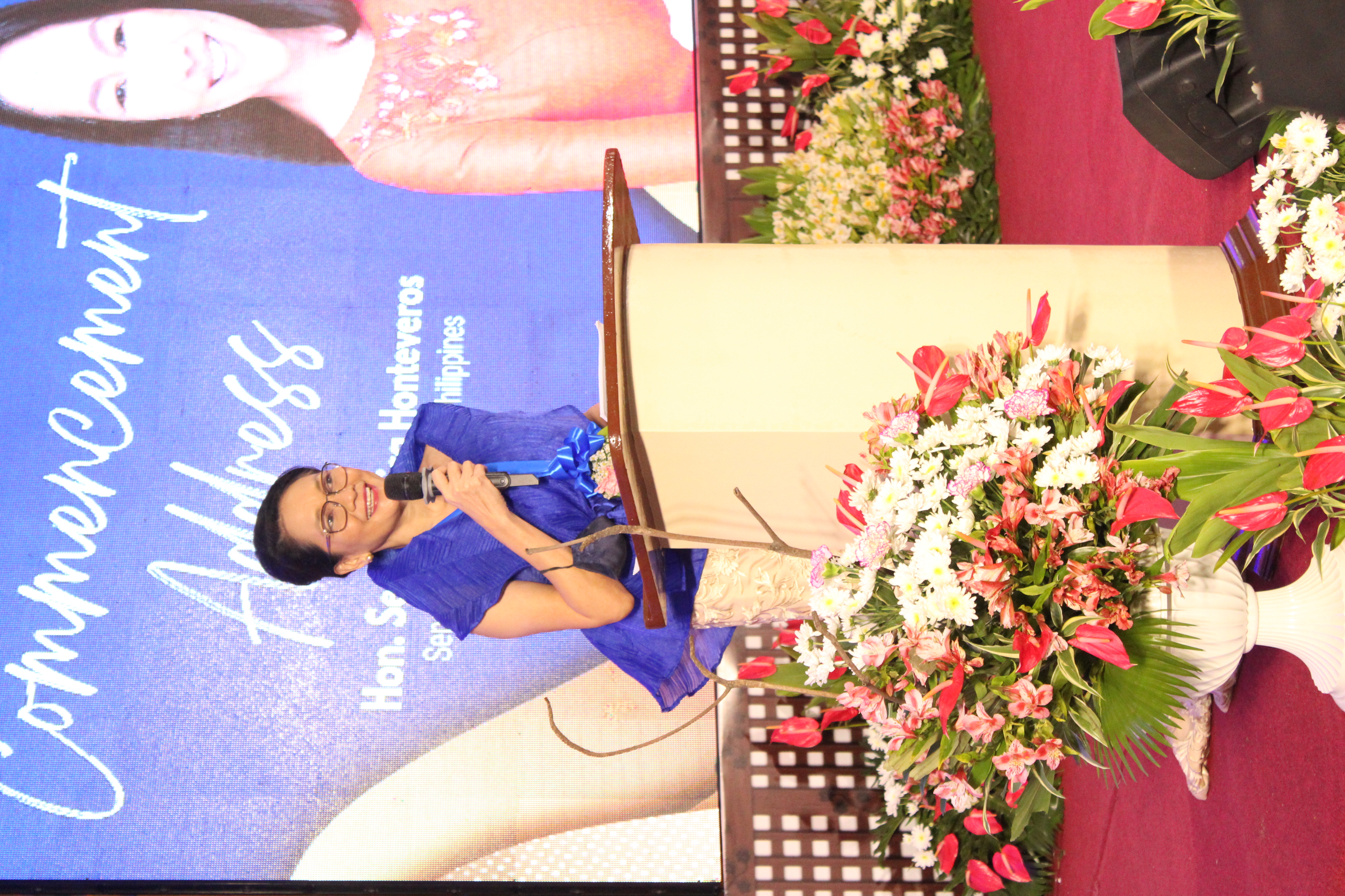 Present during the Graduate Studies Commencement Exercises is Senator Risa Hontiveros as the guest speaker. Senator Hontiveros is a health and women’s rights advocate and Philippines’ first socialist woman Senator and was known to have successfully championed laws concerning public health and women’s rights. Senator Hontiveros joined the LCUP Administrators, Graduate Studies professors, program coordinators, and LCUP Religious Community during the Processional.