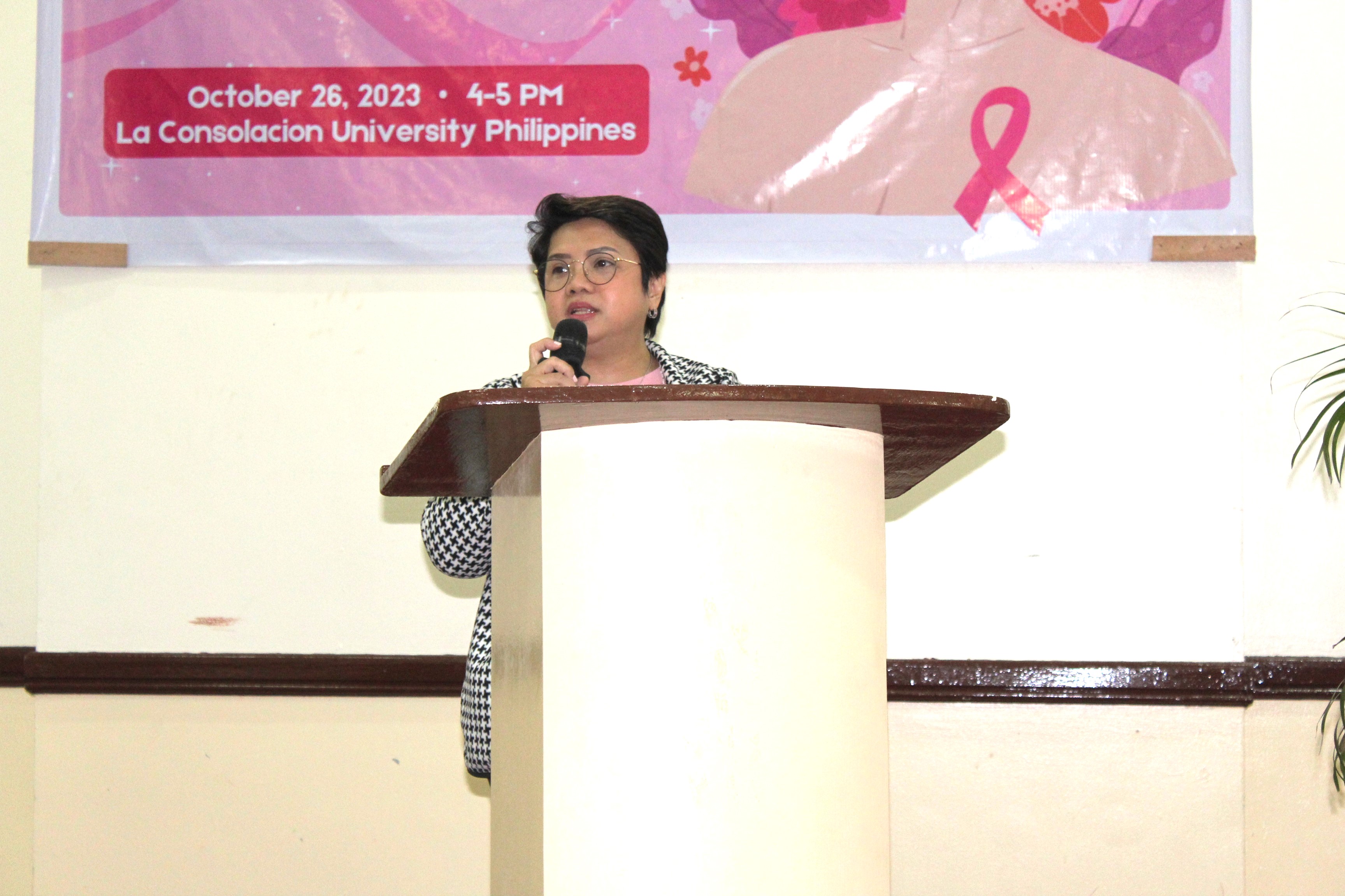 The forum aimed to increase awareness about Breast Cancer by providing facts and debunking myths about the disease. Dr. Divina Ann Eusebio, the Vice President for Academic Affairs, formally opened the program through her Welcome Remarks. Women from the different units/departments in the institution were invited to attend the forum.