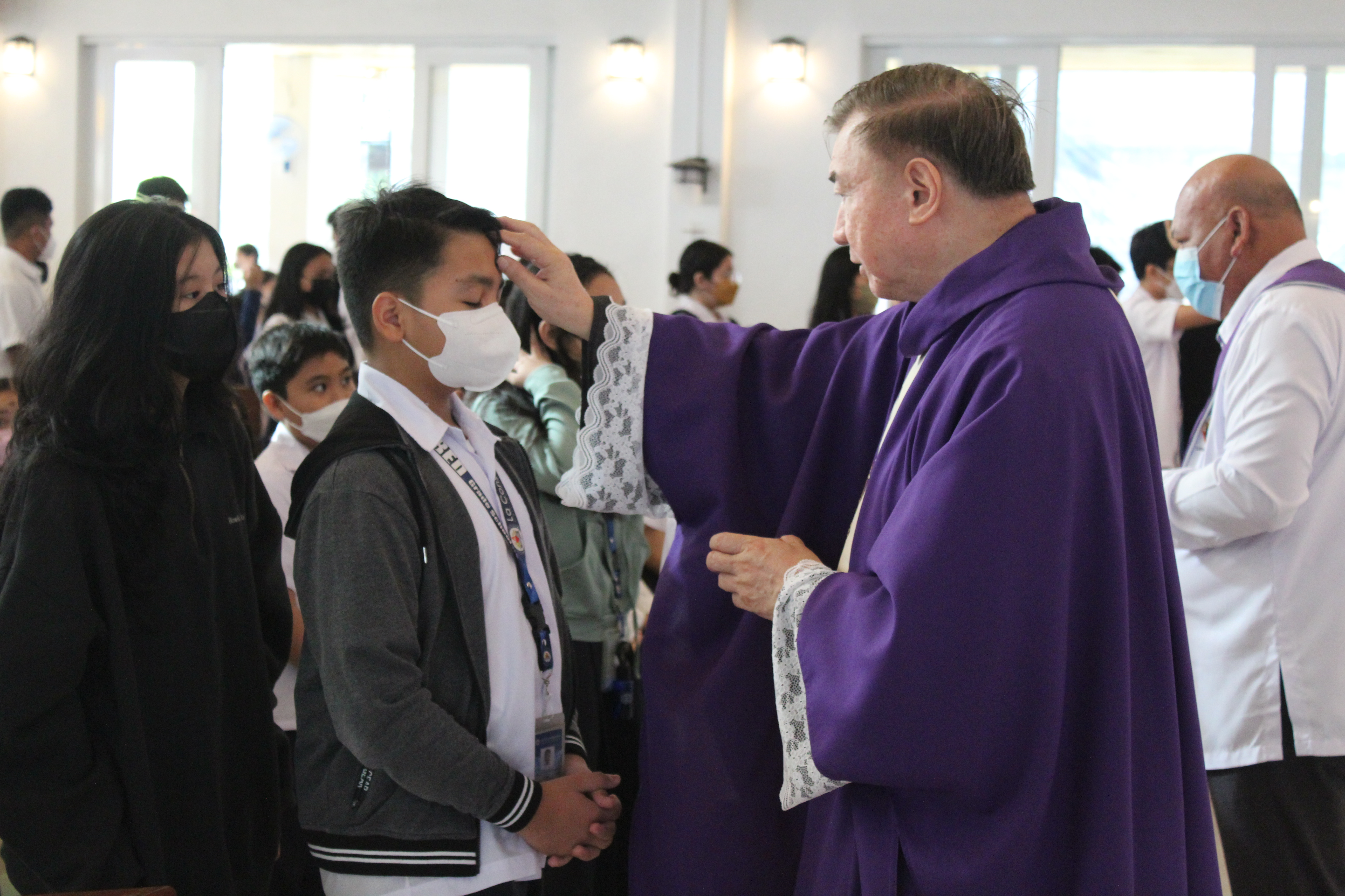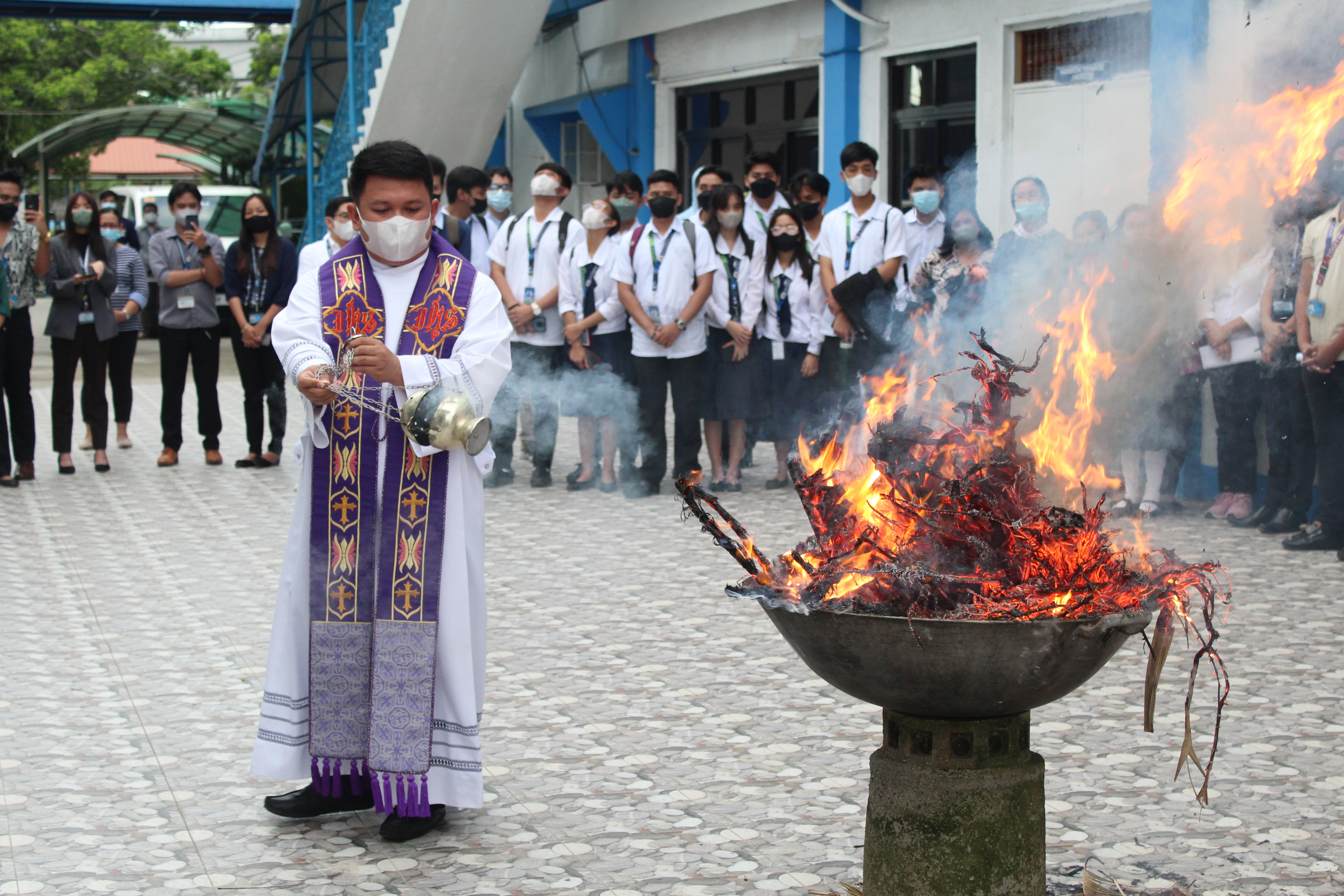 During the Rite of Sunog Sala, a Holy Mass was presided prior to the burning of the ashes. A pile of palm leaves from the previous Palm Sunday was lit and blessed. The following day, a series of Eucharistic Liturgy was presided over, giving way to the Rite of Imposition of Ashes. Students from Basic Education Department Kinder to Senior High School, College Department, and the teaching and non-personnel gathered to pray, reflect, and renew their relationship with God for a meaningful Lent observance.